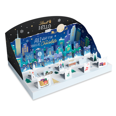 Der Lindt HELLO Adventskalender Pop-Up ist ein echter Hingucker in der Vorweihnachtszeit! Mit seinem coolen 3D-Design zum Aufklappen bringt er nicht nur optisch Weihnachtsstimmung, sondern auch geschmacklich. Hinter den Türchen verstecken sich trendige HELLO Köstlichkeiten in verschiedenen Sorten – von knusprig bis cremig. Ideal für alle, die die moderne Seite von Weihnachten genießen möchten – jung, stylisch und voller Schokoladengenuss!