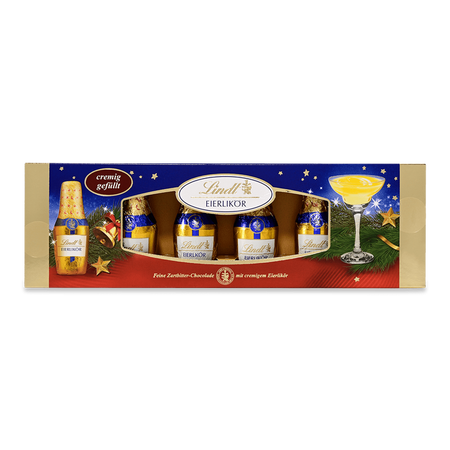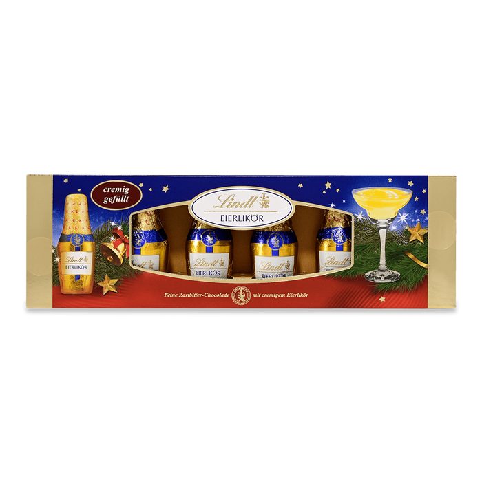 Die Lindt Eierlikör Fläschchen 131g vereinen Zartbitterschokolade mit einer cremigen Eierlikörfüllung zu einem festlichen Genussmoment. Die kleinen Fläschchen sind nicht nur optisch ein Hingucker, sondern überzeugen auch geschmacklich mit der feinen Balance aus Schokolade und dem charakteristischen Aroma von hochwertigem Eierlikör. Ideal als kleines Geschenk, zum Selbstverwöhnen oder als edles Highlight auf der weihnachtlichen Kaffeetafel. Ein Klassiker für alle, die traditionelle Aromen in edler Lindt-Qualität schätzen.