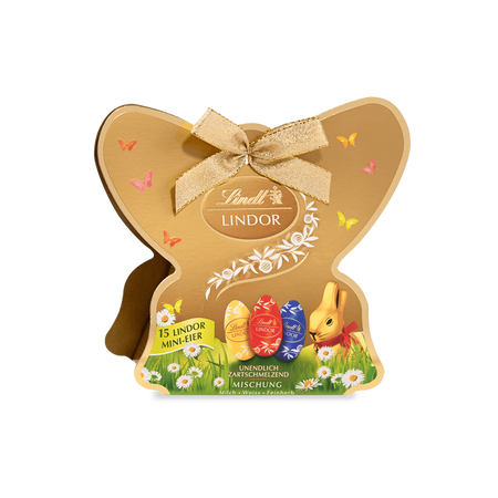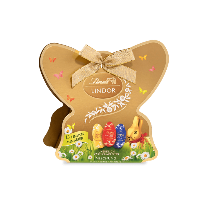 Die Verpackung ist als dekoratives kleines Geschenk gestaltet, beispielsweise im Schmetterlings- oder klassischen Ostereier-Design, wodurch sie sich gut als kleine Aufmerksamkeit, Mitbringsel oder süße Überraschung zu Ostern eignet. Mit ihrer Mischung aus verschiedenen Schokoladensorten bietet sie abwechslungsreichen Schokoladengenuss und sorgt für kleine Genussmomente beim Verschenken oder Selbstgenießen.