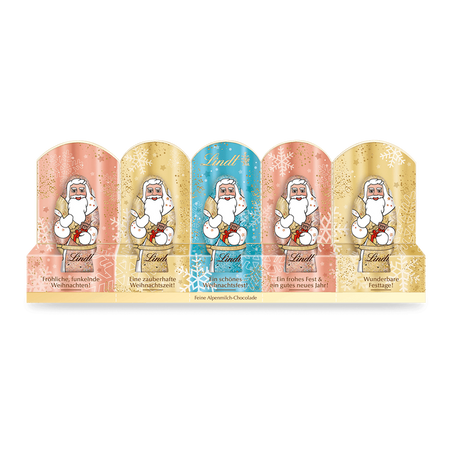 Die Lindt Mini Santa Glamour 5er-Packung (50g) bringt festlichen Glanz unter den Weihnachtsbaum. Fünf liebevoll gestaltete, kleine Weihnachtsmänner aus zartschmelzender Lindt Vollmilch-Schokolade sorgen für süße Momente in der Adventszeit. In edlem Glamour-Design verpackt, sind sie ideal als festliche Tischdeko, zum Befüllen von Nikolausstiefeln oder als kleine Aufmerksamkeit für Ihre Liebsten. Ein eleganter Genuss für Groß und Klein!