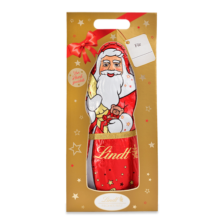 Gefertigt aus feinster Lindt Vollmilch-Schokolade und liebevoll von Hand verpackt, überzeugt der große Weihnachtsmann durch höchsten Genuss und edle Optik. Ob als exklusives Präsent, dekoratives Highlight oder süßer Vorrat für die ganze Familie – dieser Schokoladenriese sorgt für festliche Stimmung und unvergessliche Genussmomente.